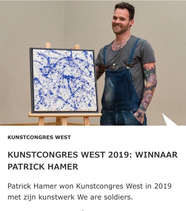 Patrick Hamer is one of the three winners of the recently held “Art Congress with perspective” (West region) for people with an employability limitating illness. His ‘army of miniature soldiers on canvas’ named ‘We are soldiers’ was a pleasant surprise for the jury. The art from the Kampen inhabitant has hit the rapids. The prize winning piece will take part in a travelling exposition in the west part of the country.